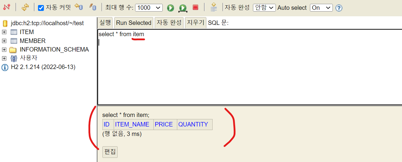 위와 같은 열을 가진 ITEM table 을 만든다.